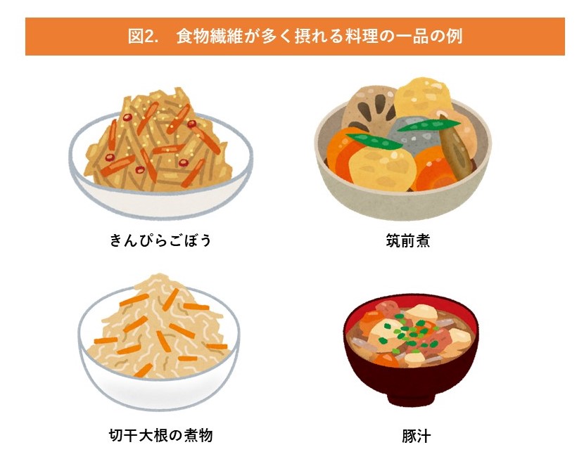 「食物繊維はからだによい」というお話はよく耳にされているのではないでしょうか。食物繊維の多い食品といえば、かぼちゃ・ブロッコリー・モロヘイヤなどの緑黄色野菜や、ゴボウ・さつまいも・たけのこ・納豆・おから・ひじき・切千大根などが挙げられます。